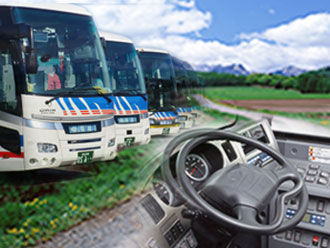 バスは大型車両ならではの安全性の配慮や、緊急時の対応が求められます。弊社のバス車両は安全対策として追突や衝突の危険を回避する衝突防止装置を設置・導入を進めております、またバスジャックなどの不測の事態や非常事態の際にも的確に行動ができるようにドライバー、バスガイドの訓練を実施しております。その他、運転技術向上を目的とした走行訓練をはじめ、冬山でのチェーンの装置訓練。危険回避方法など習得致します。