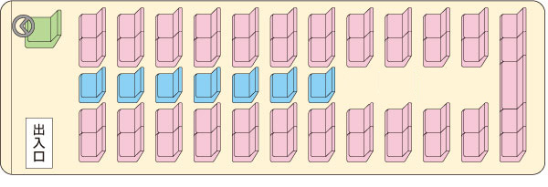 ※12列目は5人掛け(正座席)です ※水色の座席は補助席になります(補助席11人) ※写真は一例です。
