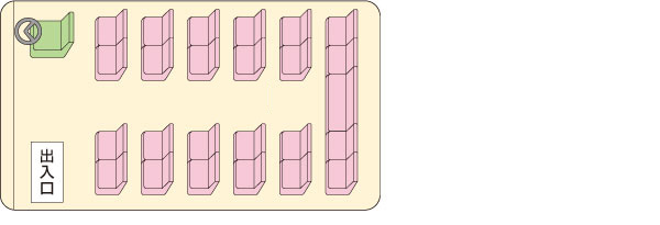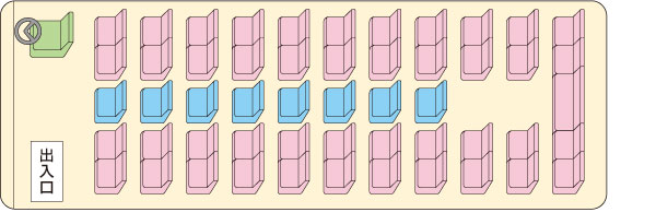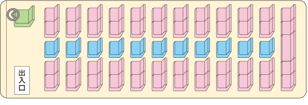 ※11列目は5人掛け(正座席)です ※水色の座席は補助席になります(補助席8人) ※写真は一例です。