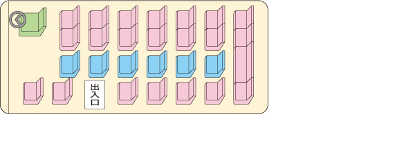 ※7列目は4人掛け(正座席)です ※水色の座席は補助席になります(補助席6人) ※写真は一例です。